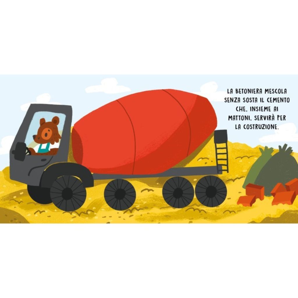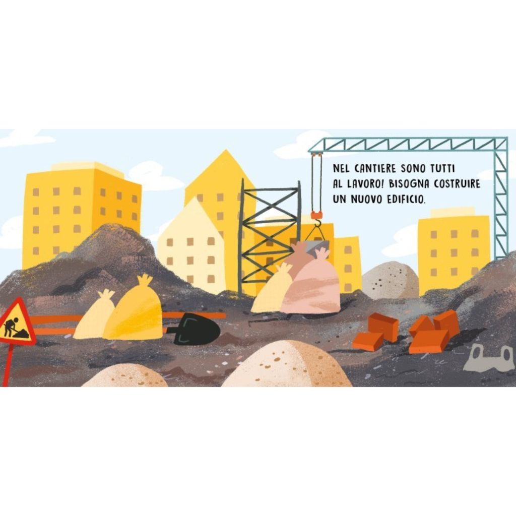 Quali macchine puoi trovare in un cantiere, e quanti suoni differenti producono? Scoprili tutti in questo piccolo libro sonoro dove, pagina dopo pagina, imparerai tutto ciò che succede durante la costruzione di un nuovo edificio.