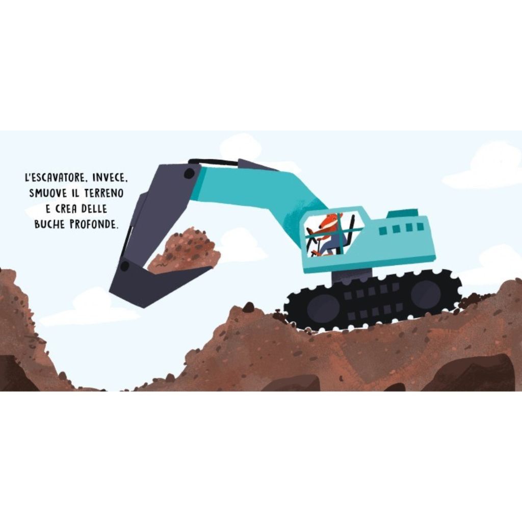 Un libro sonoro con illustrazioni semplici e delicate e sei deliziosi suoni, per imparare a riconoscere i suoni prodotti dai macchinari all’opera in un cantiere. Non c’è bisogno di premere un pulsante: basta girare la pagina per far iniziare i suoni!