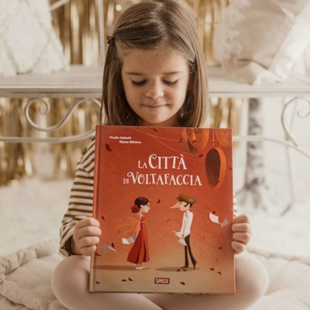 La città di Voltafaccia è una storia illustrata magistralmente curata, scritta da Claudio Gobbetti e illustrata da Diyana Nikolova, pubblicata da Sassi Junior nel 2023. L’albo si compone di 48 pagine, dal formato elegante (circa 23 × 28 cm), perfetto per i giovani lettori dai 5 anni in su.